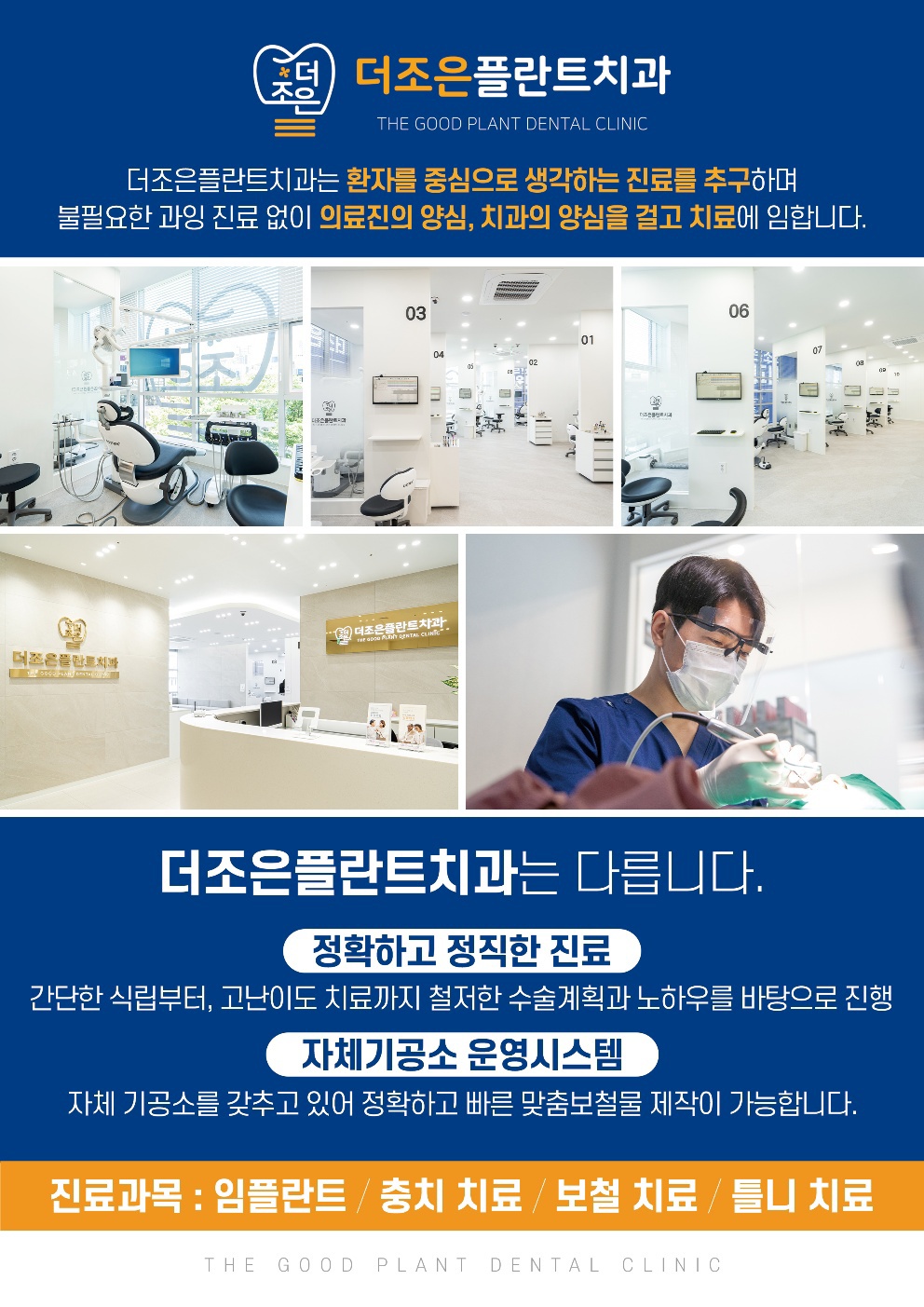 안녕하십니까.울산더조은플란트치과 입니다.저희 치과는신정시장 앞, 2층과 3층에 걸쳐 위치한대형 규모의 치과입니다.최신 장비와 쾌적한 시설,4명의 원장님,그리고 30여 명의 직원들이 함께정성 어린 진료를 제공하고 있습니다.진료는 정성과 신뢰를 바탕으로한 분 한 분 가족처럼 정성껏 모시겠습니다.치과 진료가 필요하시거나상담이 필요하신 분이 계시다면언제든지 편하게 문의 주세요.상담문의 : 070-5080-3073
